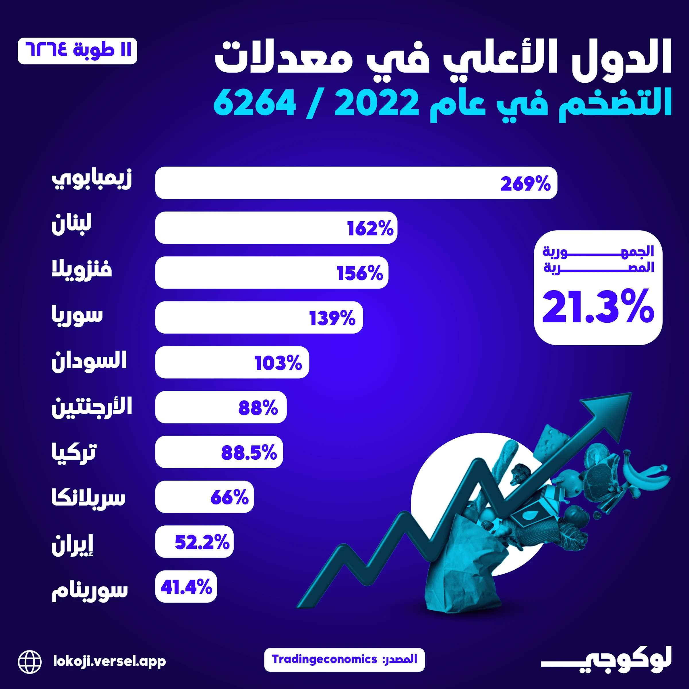 الدول الاعلي في معدلات التضخم عام 2022 / 6264